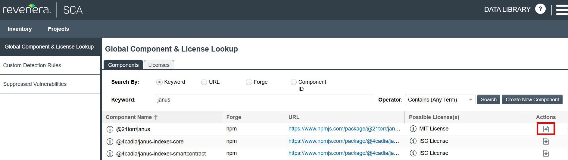 Open the Global Component & License Lookup tab, using the instructions in Accessing the Global Component & License Lookup Feature.