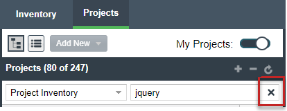 icon in the criterion field to remove the current Projects pane filter: